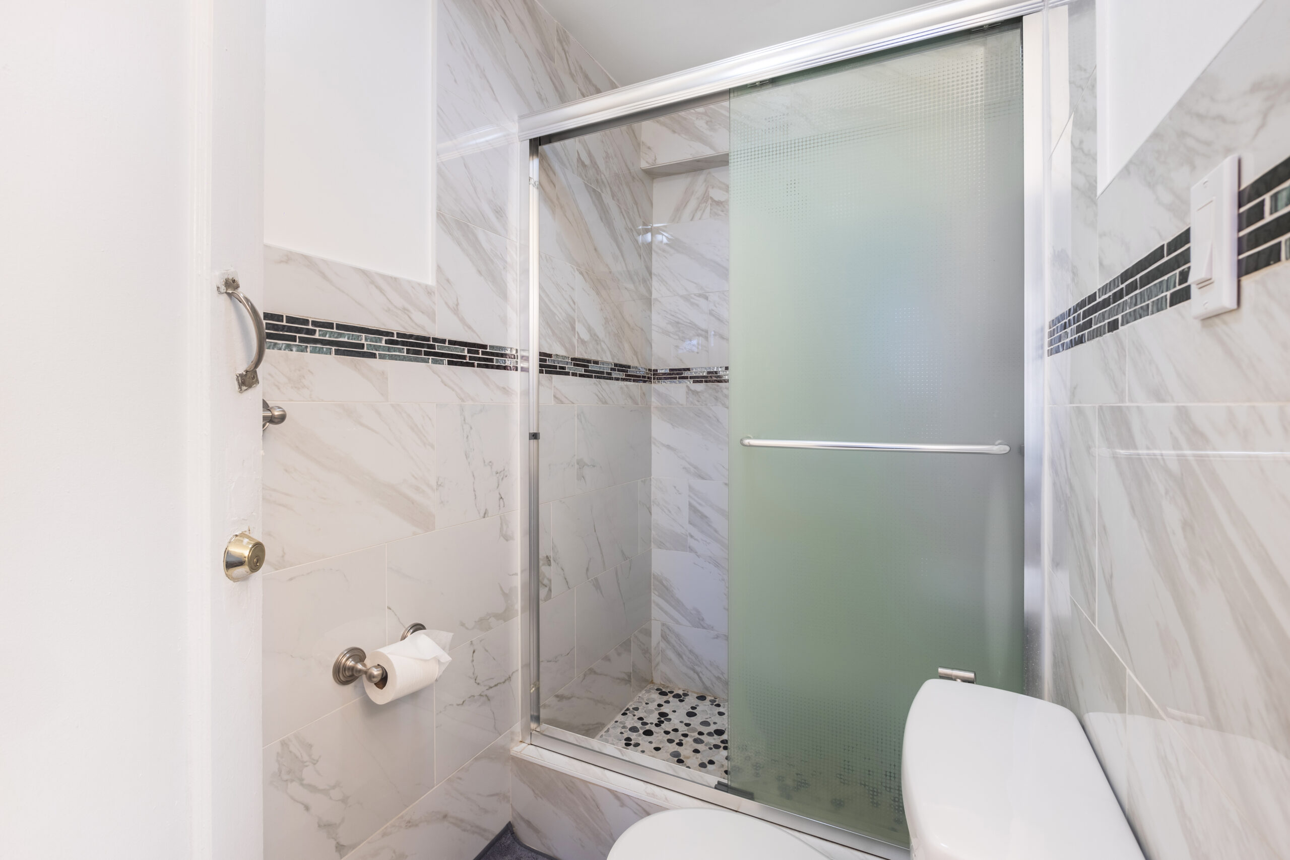 Indulge in a newly renovated private bathroom, accessed with a key, featuring a refreshing bathtub conveniently located in the hallway.
